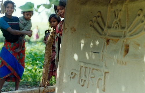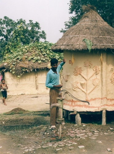 Close to our house in Rajapur; note the cow dung drying for use on cooking fires