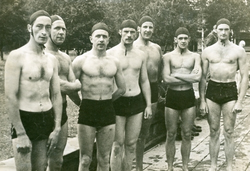 Irish Guards water polo team in Cologne August 1945; Joe is third from the left.