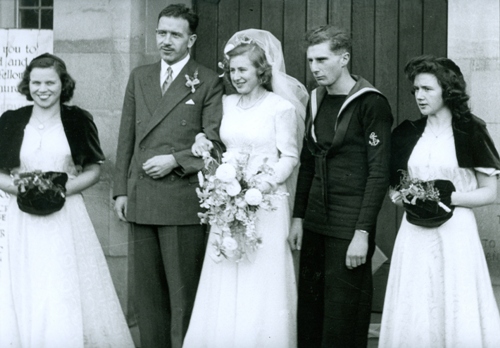 Joe and Peggy at Christ Church Methodists, Worcester Park Boxing Day 1947 with May, Eric & Lilly