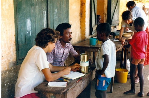 Maggie (foreground), Marco, Sally and Simon checking the children of Ankilivalo; photo Anne Denning