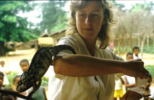 Appearing in the playground with a chamaeleon caused chaos in Ankilivalo; photo by Simon Howarth